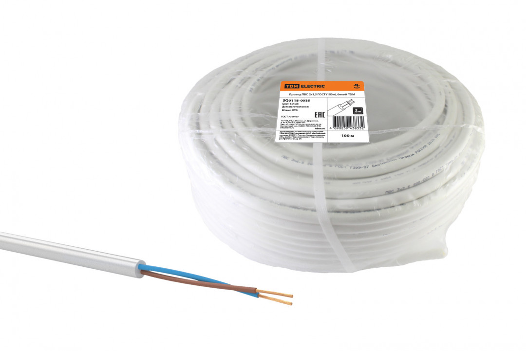 Провод ПВС 2*1,5 ГОСТ белый