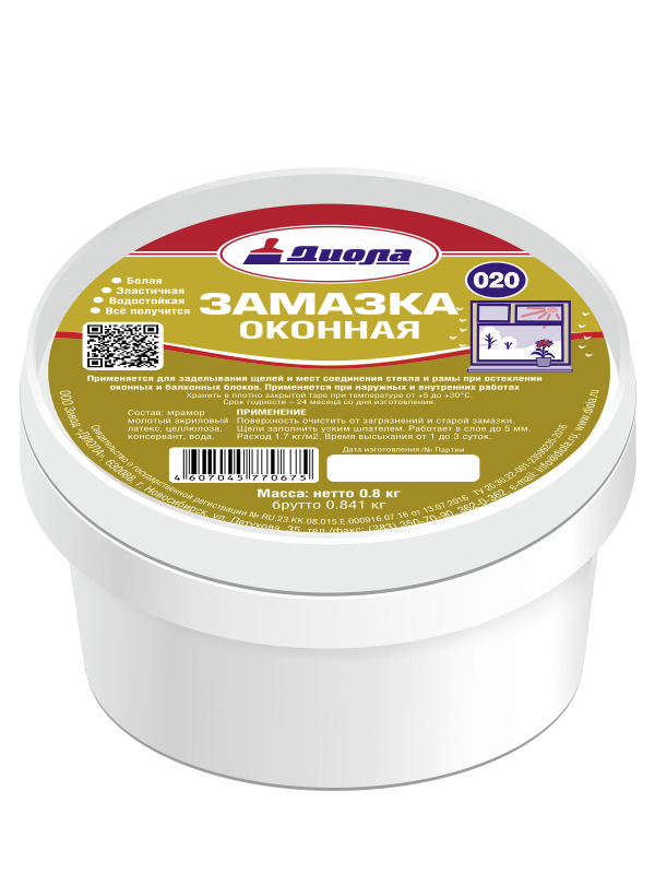 Замазка оконная Диола - 020 0,8 кг