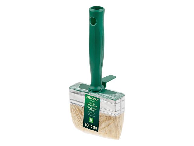 Щетина надежно закреплена металлическим бандажом с антикоррозийным покрытием. Съемная пластмассовая ручка, имеет отверстие для подвешивания, а также специальное приспособление для крепления на емкость