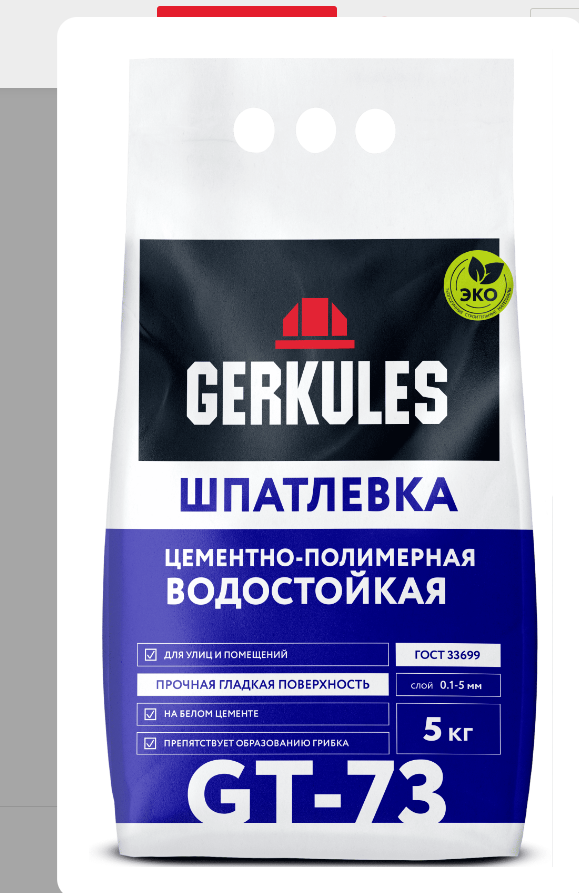 Выберите Шпатлёвка полимерная ГЕРКУЛЕС GT-73, водостойкая, белая, 5кг