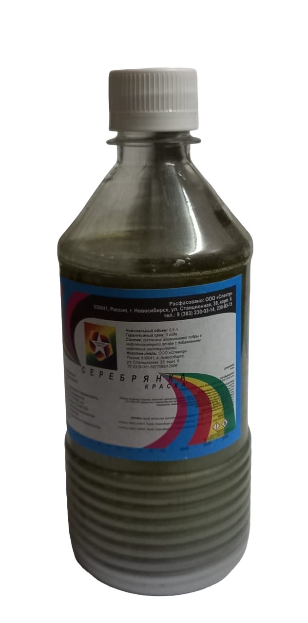 Способ применения: перед нанесением - тщательно перемешать. Для необходимой вязкости (при работе с краскораспылителем) "Серебрянка" разводится разбавителем для маслянных красок, уайт-спиритом или сольвентом.